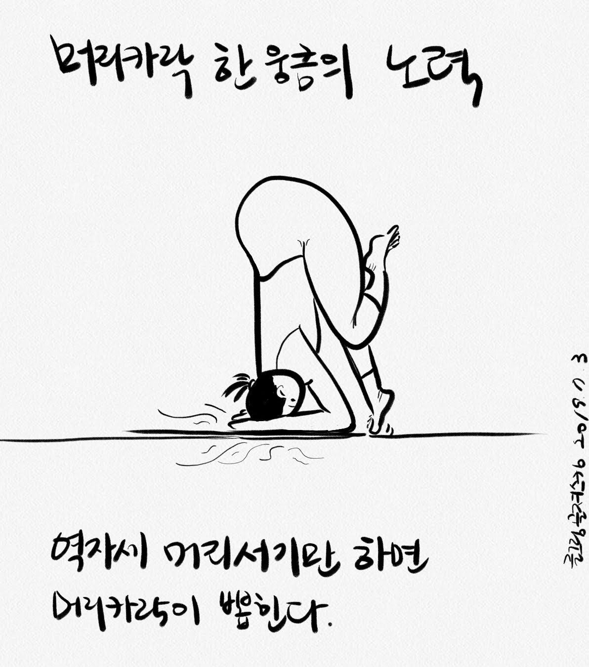 효리네 민박을 통해 요가의 자세 중 머리 서기가 대중적으로 널리 알려졌다. 나 역시도 머리 서기에 대한 동경이 있다. 물론 잘 못 한다는 게 함정이다.