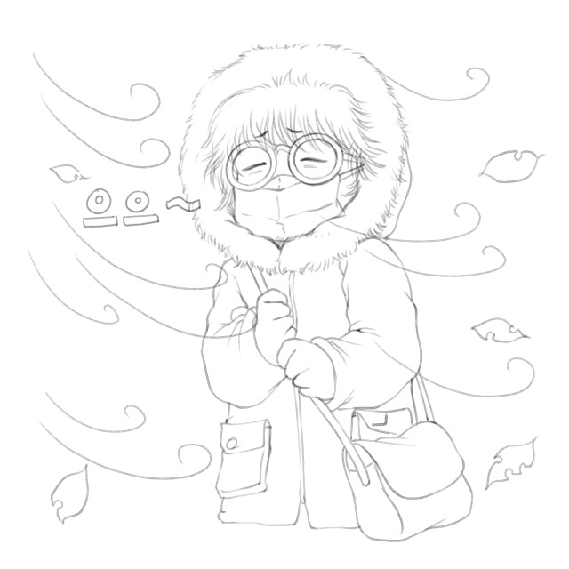 옷 속으로 찬 가운이 스며들어서