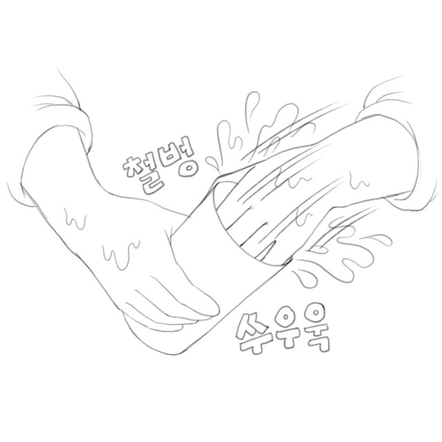 물 싸대기를 찰싹 소리 나게 날렸다.