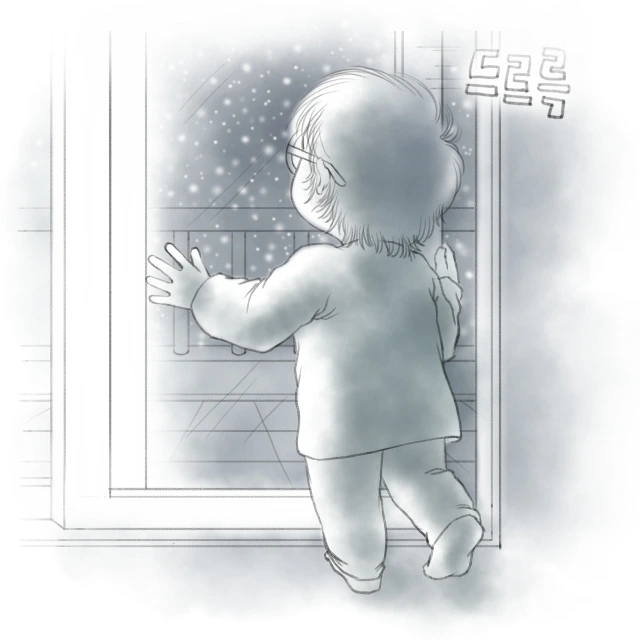 팔짱 끼고 잔뜩 움츠린 채로 발코니에 나가