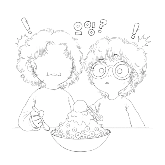 빙수를 슥슥 비비시더니 갑자기 찬물을 부셨다.
