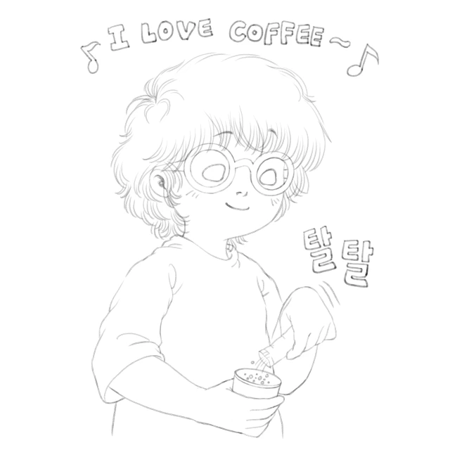 절반 남은 커피에 아직도 녹지 않은 알맹이가 의아해