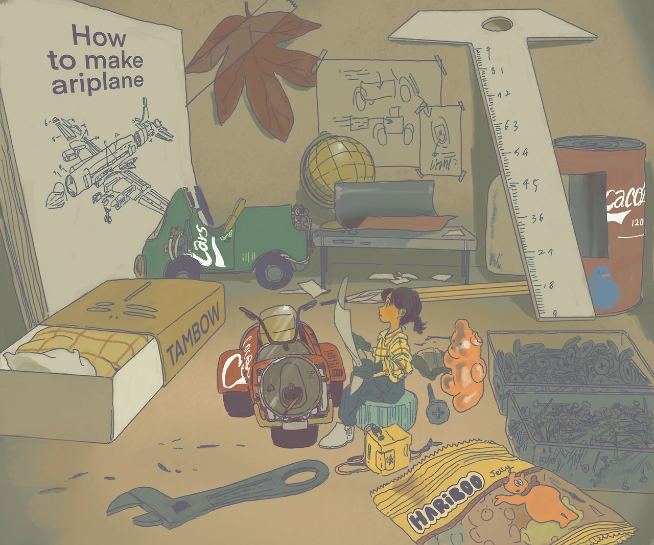 제가 생각한 엄지 공주는 자신 스스로의 힘으로 여러 가지 기계를 만들고 그 기계를 타고 자유롭고 멋지게 세계를 누비고 있습니다.