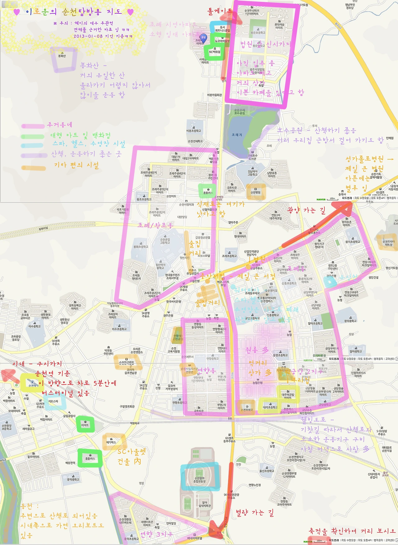 2013년 2월. 혼자 살 집을 구하러 순천에 왔다. 선배 간사에서 퇴사 동기가 된 은의 언니가 다정한 동행이 되어주었다. 혜미가 메일로 보내준 지도엔 순천 시내의 백화점, 수영장, 서점, 병원, 공원 등이 야무지게 표시되어 있었다. 순천 지리를 하나도 몰랐던 나는 그 지도를 두 장이나 프린트해서 닳도록 보았다. 또 하나 믿는 구석이 있었는데 어린 시절 십 년 넘게 같은 교회에 다녔던 D오빠였다. 순천의 신도심에서 학생들 수학 과외 선생님으로 잘 나가고 있다고, 순천 가면 형이 맛있는 거 사줄 거라고, 그를 잘 따르던 교회 동생들이 입을 모아 얘기했다. 오랜만의 연락에도 한결같은 목소리로 반겨준 오빠는 집 구하러 올 때 연락 주면 도와주겠다고 했다. 든든한 지원군들 덕분에 순천에 집 보러 가는 길이 외롭지 않았다.