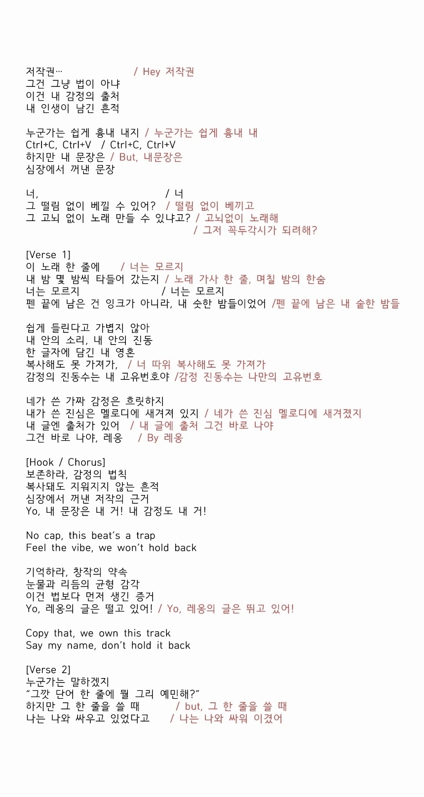 《저작권 보존의 법칙 》 작사/레옹 (Feat.SMY)