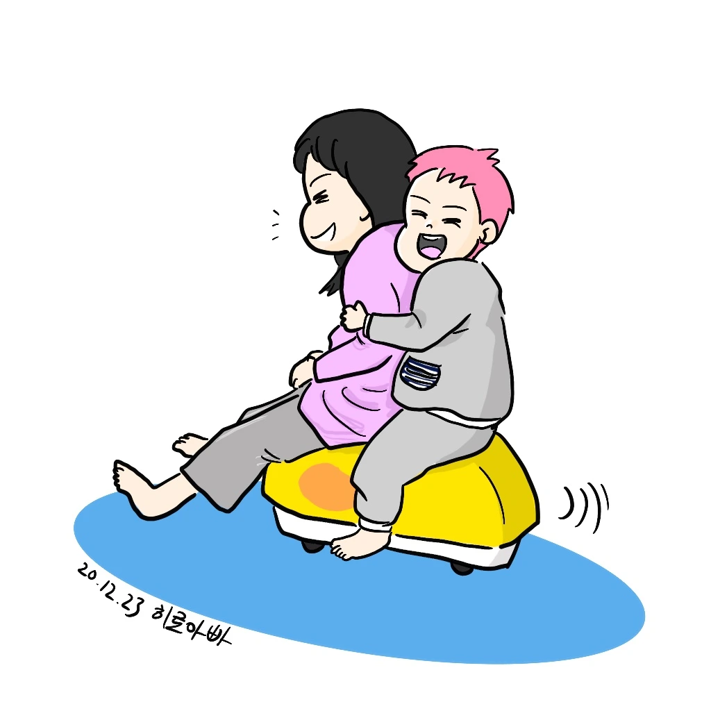 한동안 타지 않던 누나도 분홍이가 틈만 보이면 어느샌가 붕붕카에 타고 있다.오늘은 둘이서 함께 거실 드라이빙.역시 다섯 살 경험 많은 숙련된 누나의 운전 솜씨가 일품이다.누나도 동생도 웃음 가득하다.