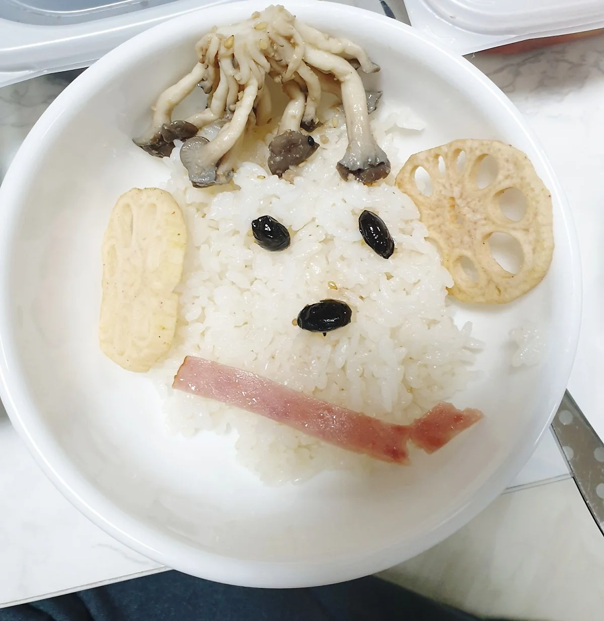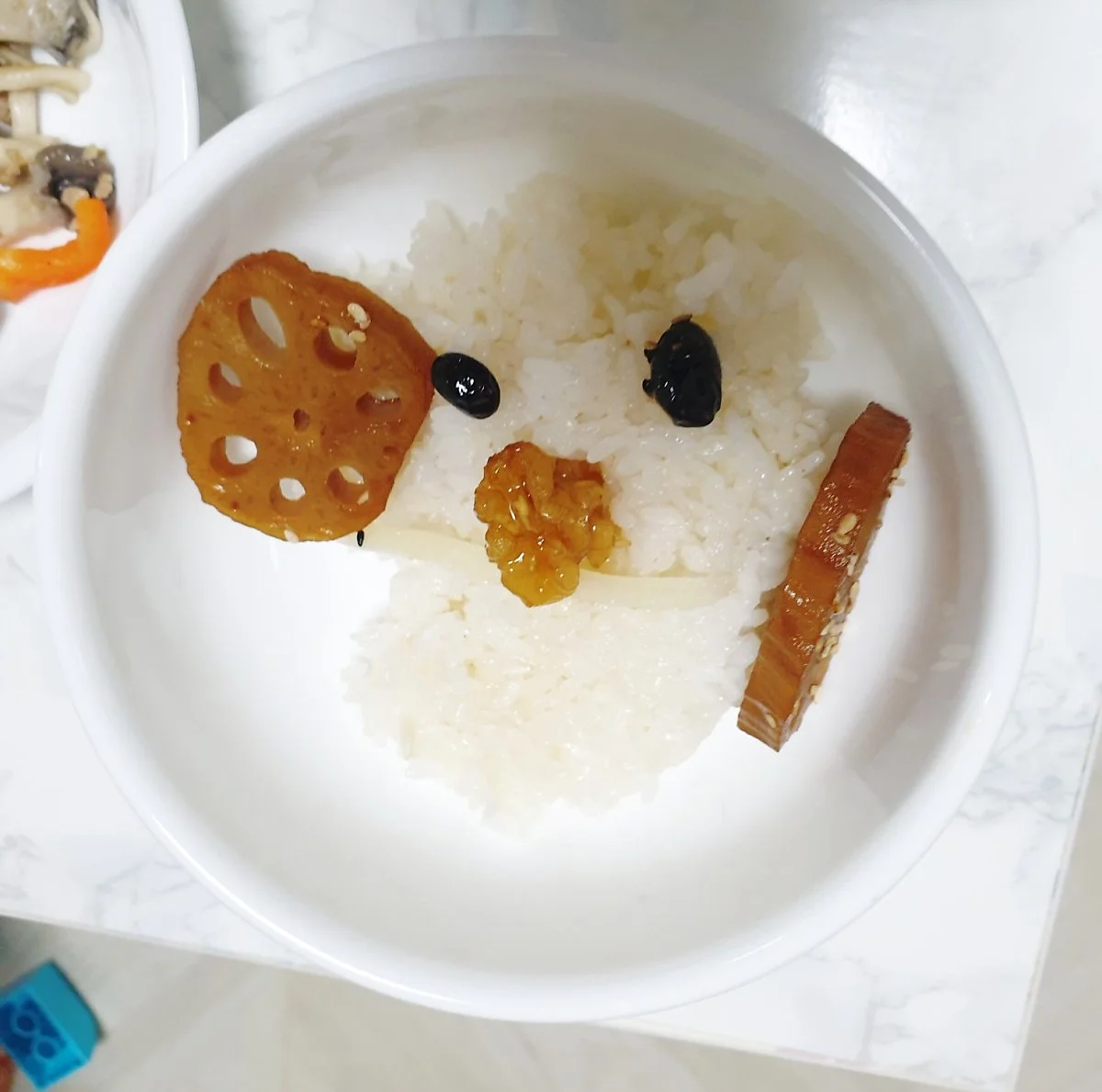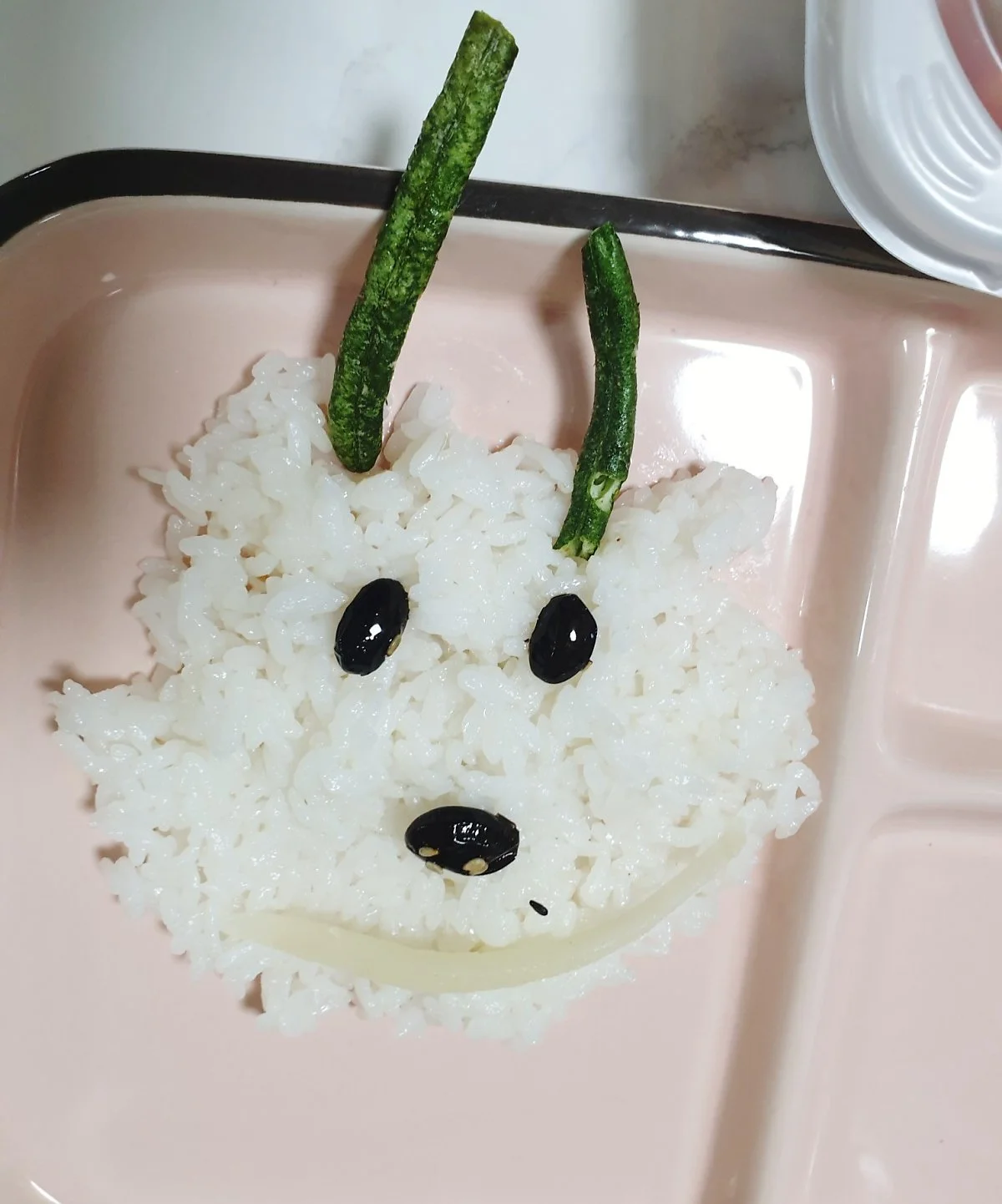 히로의 밥은 히로가 좋아하는 토끼 얼굴.