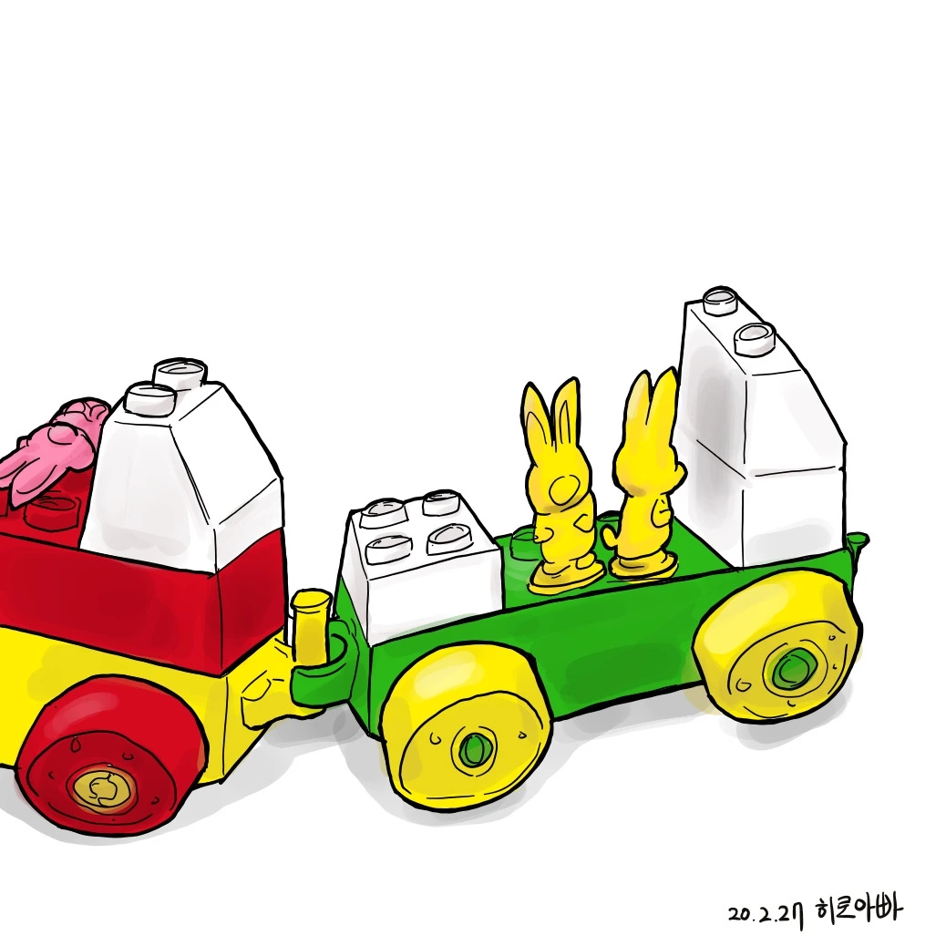 1. 먼저 스케치북에 히로 몰래 오늘 만들었으면 하는 것을 그려둔다. 오늘은 적은 개수의 블록으로 간단하게 만들 수 있는 '토끼 자동차'를 주제로 그림을 그렸다.