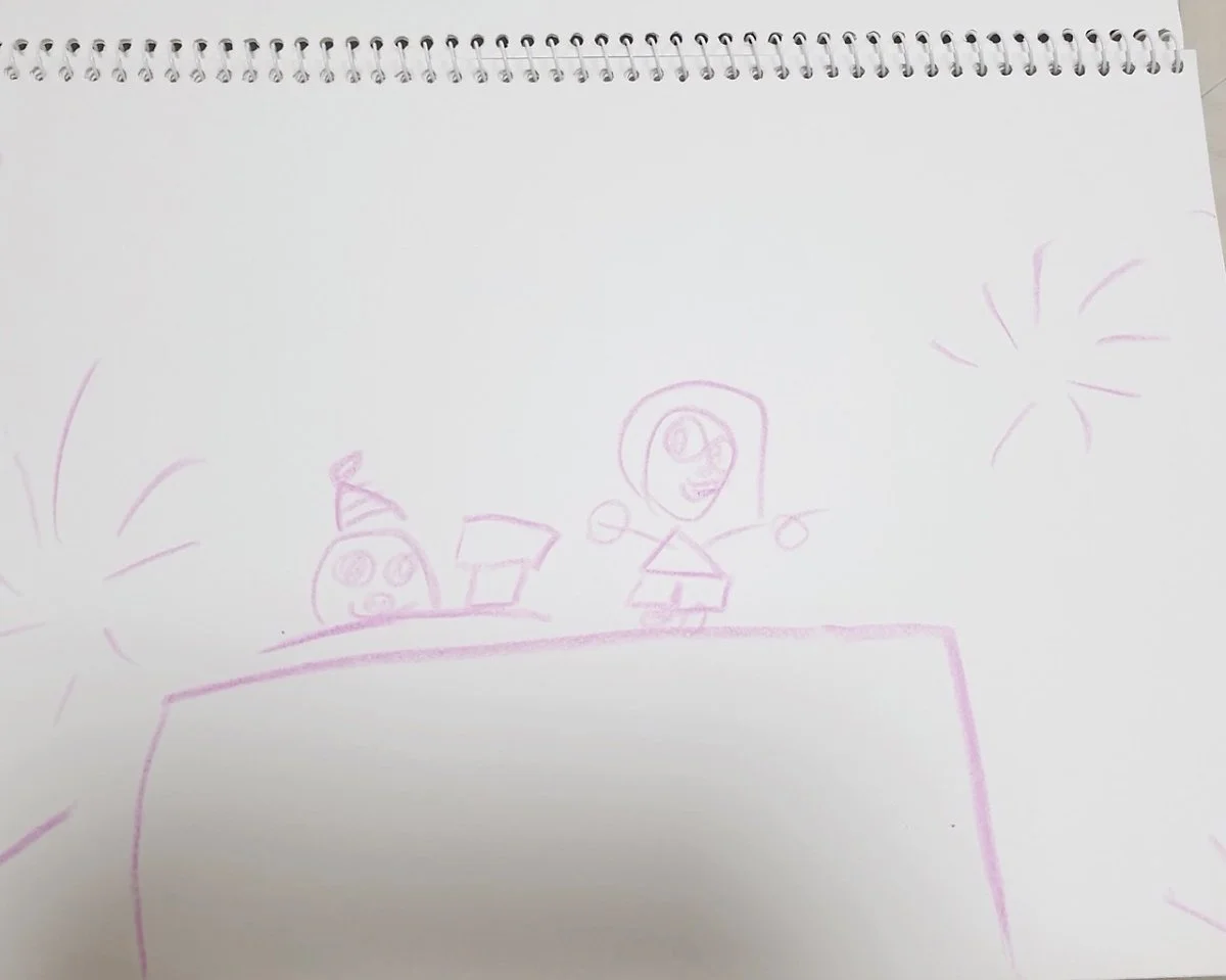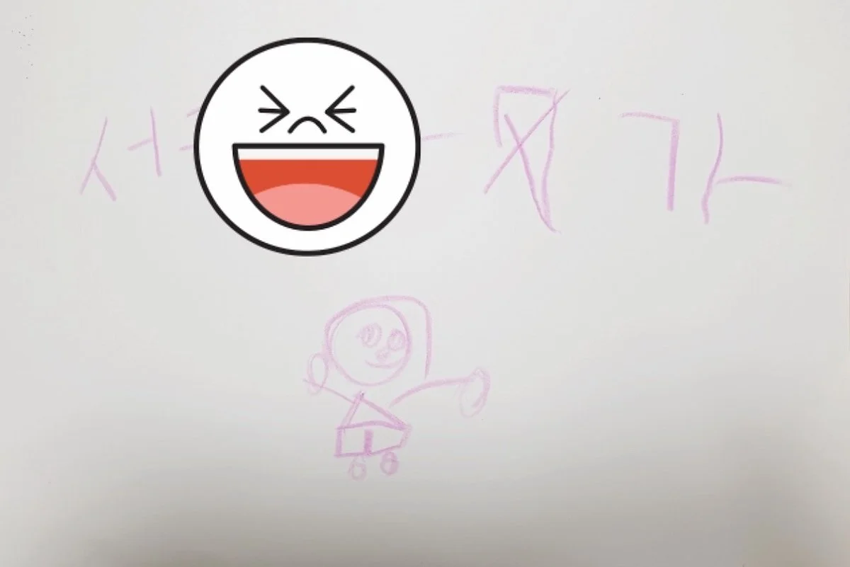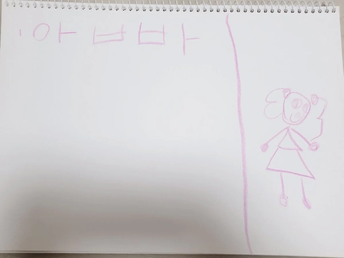 중문을 여니 자그마한 몸 뒤에 숨긴 스케치북을 휙 하고 보여주었다.