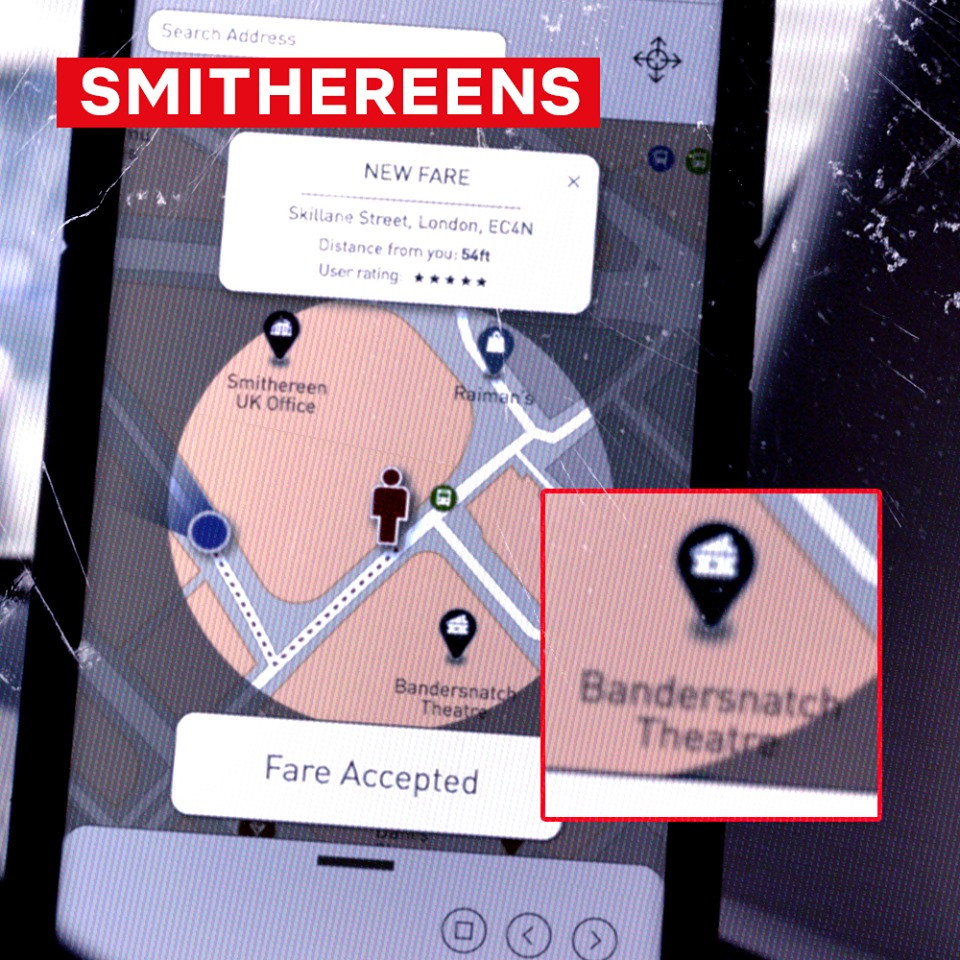 두 번째 에피소드 <스미더린>은 런던 시대의 소셜미디어 회사 '스미더린'에 대한 이야기다. 공유 택시 운전자가 스미더린 직원을 납치한다. 그리고는 스미더린의 CEO와 통화를 요구한다. 급기야 경찰, FBI까지 연합된 상황에서 그의 요구를 들어주어야 한다. 극적으로 묵언수행 중인 오너 빌리 바우어와 통화가 된다. 그가 하고 싶은 이야기는 뭘까?