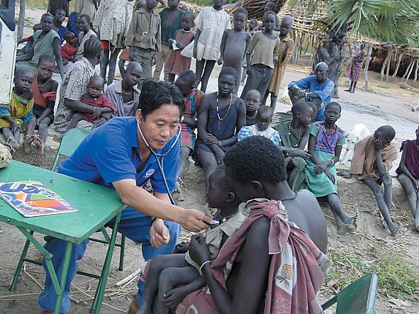 톤즈에서 이태석 신부는 가장 먼저 의술을 펼친다. 전쟁과 가난은 수단 사람들을 그림자처럼 따라다녔고, 상처와 공포가 일상화된 곳이다. 만약 공격을 받으면 상대방은 물론 가족, 친척, 부족의 일원에게라도 보복을 해야 직성이 풀리는 문화를 가지고 있다. 아무 잘못 없이 총상을 입고 온 사람들을 치료하며 이태석 신부는 과연 어떻게 해야 할지 매일 밤 좌절했다.