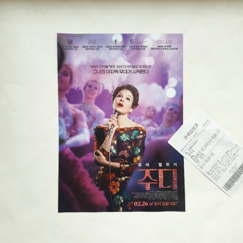 주디, Judy, 2019, 루퍼트 굴드어떤 영화는 영화 자체가 그 배우로 보이는 까닭에 도무지 떼어놓고 말할 수 없을 때가 있다. 배우 르네 젤위거는 영화 <주디>를 통해 또 한 번 자신의 연기 필모그래피를 갱신했다. 기구하고 슬픈 삶이 빛날 수 있었던 것은 르네 젤위거의 연기 변신이다. 주디 갈랜드가 살아 돌아온 듯 완벽했다. 영화<시카고>에서 보여준 노래 실력은 물론 외모와 말투, 표정까지 메서드 연기를 펼친다. <주디>로 르네 젤위거는 제92회 아카데미 시상식에서 여우주연상을 받았다.