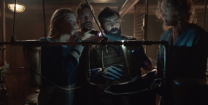 영화 <씨 피버> 스틸컷갑자기 무언가 배와 부딪히며 선체는 이상하게 변해갔다. 녹색 빛의 끈적이는 액체, 선박에 붙은 존재는 배에 침입해 인간들을 위협한다. 이 상황이 무서운 것은 어떤 존재인지 알 수 없는 두려움 때문이다. 때문에 누가 감염되었는지 몰라 서로를 의심하고 반목한다.