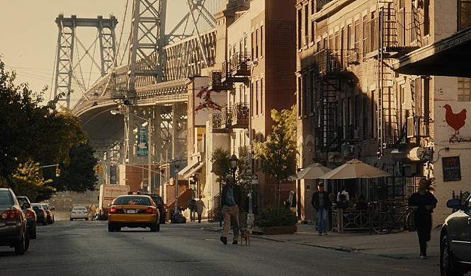 영화 <브루클린의 멋진 주말> 스틸컷한편, 집을 내 놓고 사람들이 들락날락 거리며 가격 흥정으로 밀땅하는 정신없는 상황 속. 자식 과도 같았던 개 도로시의 척추 수술과 다리 위의 유조차 소동 때문에 혼란스럽다. 언론은 테러범의 소행이라고 몰아붙이는 통에 집값이 떨어지고 있다.
