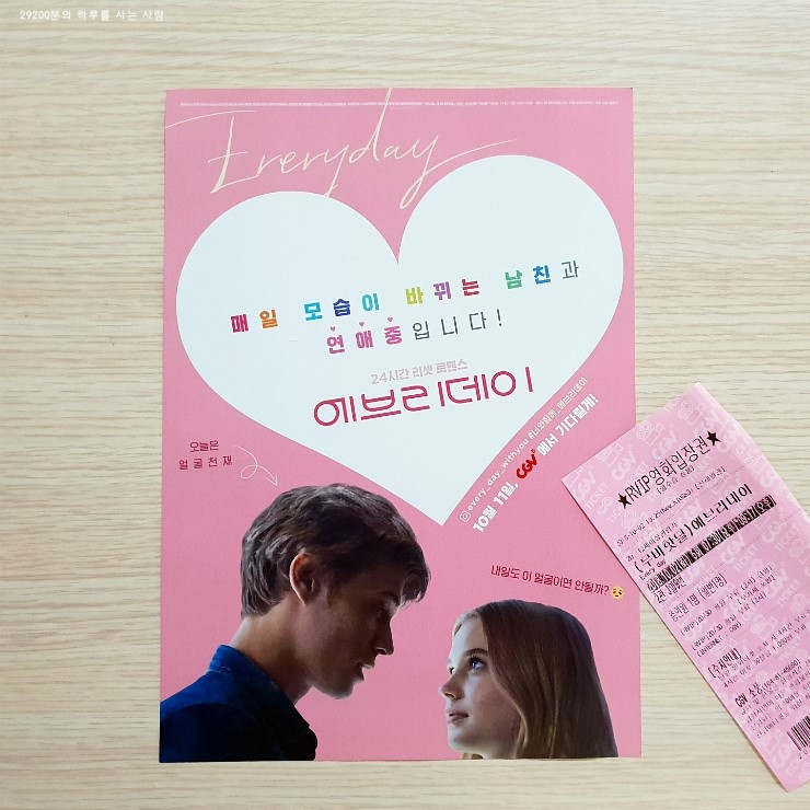 참 발랄하고도 꽁냥꽁냥한 기분이 드는 영화입니다. <뷰티 인사이드>가 한국적 정서와 다양한 남배우들의 매력을 느끼는 성숙함이었다면, <에브리데이>는 풋풋하고 통통 튀는 십 대 감성으로 관객의 기분을 업시킬 로맨스 영화입니다. 깊어가는 가을, 기분 좋은 로맨스 한편을 찾는다면 <에브리데이>를 추천합니다.