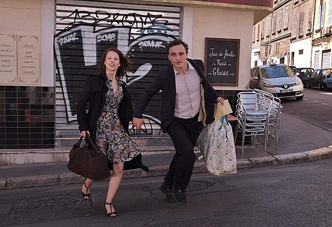 영화 <트랜짓> 스틸컷둘째는 읽다가 만 부분을 표시하는 책갈피처럼 이리저리 옮겨 다니는 마리다. 마리는 현재 리처드와 살고 있지만 남편 바이델을 그리워하며 기다리는 중이다. 마치 과거(작가)와 현재(의사), 미래(수리공) 세 남자를 유유자적 흐르는 시간과도 같다. 어디에도 얽매지 않고 세 사람을 통과해 존재한다. 3주 전 리처드와 마리는 마르세유를 떠날 기회가 있었지만 모두 승선 직후 마리가 내렸고 리처드도 따라 내렸다. 리처드는 마리아 함께 떠나고 싶지만 마리의 통행증을 가지고 있는 그녀의 남편 때문에 혼자 떠나지 못한다. 그리고 마치 데자뷔처럼 게오르그도 새 출발 할 수 있는 기회를 얻지만 마리로 인해 좌절되며 혼돈을 겪는다.