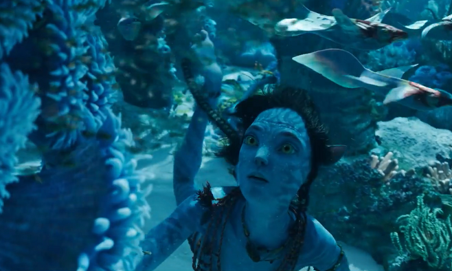 18분 푸티지 영상에서 느껴지는 <아바타: 물의 길>은 부제에서 설명되듯이 수중 장면이 등장합니다. 1편이 판도라의 우림 지역과 광산 개발에 관한 생태계 파괴와 위협을 다루었다면, 2편에서는 바다 생태계와 파괴를 말한다고 밝혔습니다.