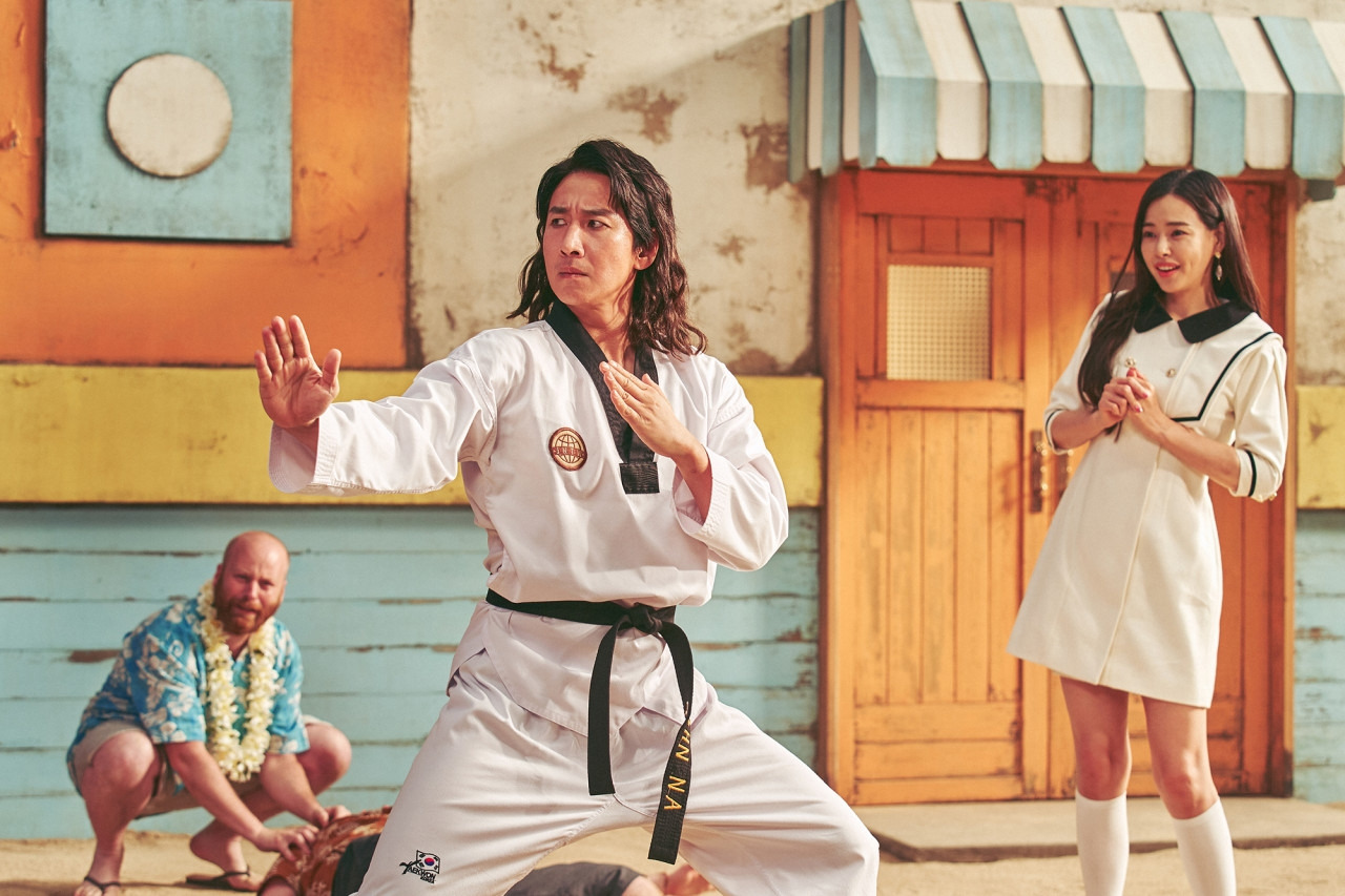 영화 <킬링 로맨스> 스틸컷하지만 HOT의 ‘행복’이나 비의 ‘레이니즘’을 개사한 ‘여래이즘’이 반복적으로 나올 때마다 파블로프의 개처럼 따라 부르게 만드는 중독성이 만만치 않다. 한번 웃음 코드에 빠져들면 헤어 나오지 못할 치명적인 개그다. 무엇보다 진심을 다해 당황스럽고 유치한 상황을 연기한 배우들의 호연이 잊히지 않는다. 다채로운 표정과 말투 뮤지컬까지 소화한 이하늬와 잊을만하면 주문처럼 ‘이츠 굿’을 연발하는 이선균의 변신이 제 몫을 다한 영화다.