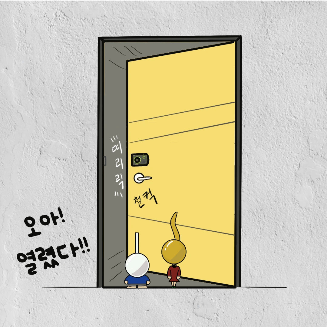 그러자 마치 비밀의 문이 열리듯, 띠리릭 소리와 함께 무거운 현관문이 열렸습니다.
