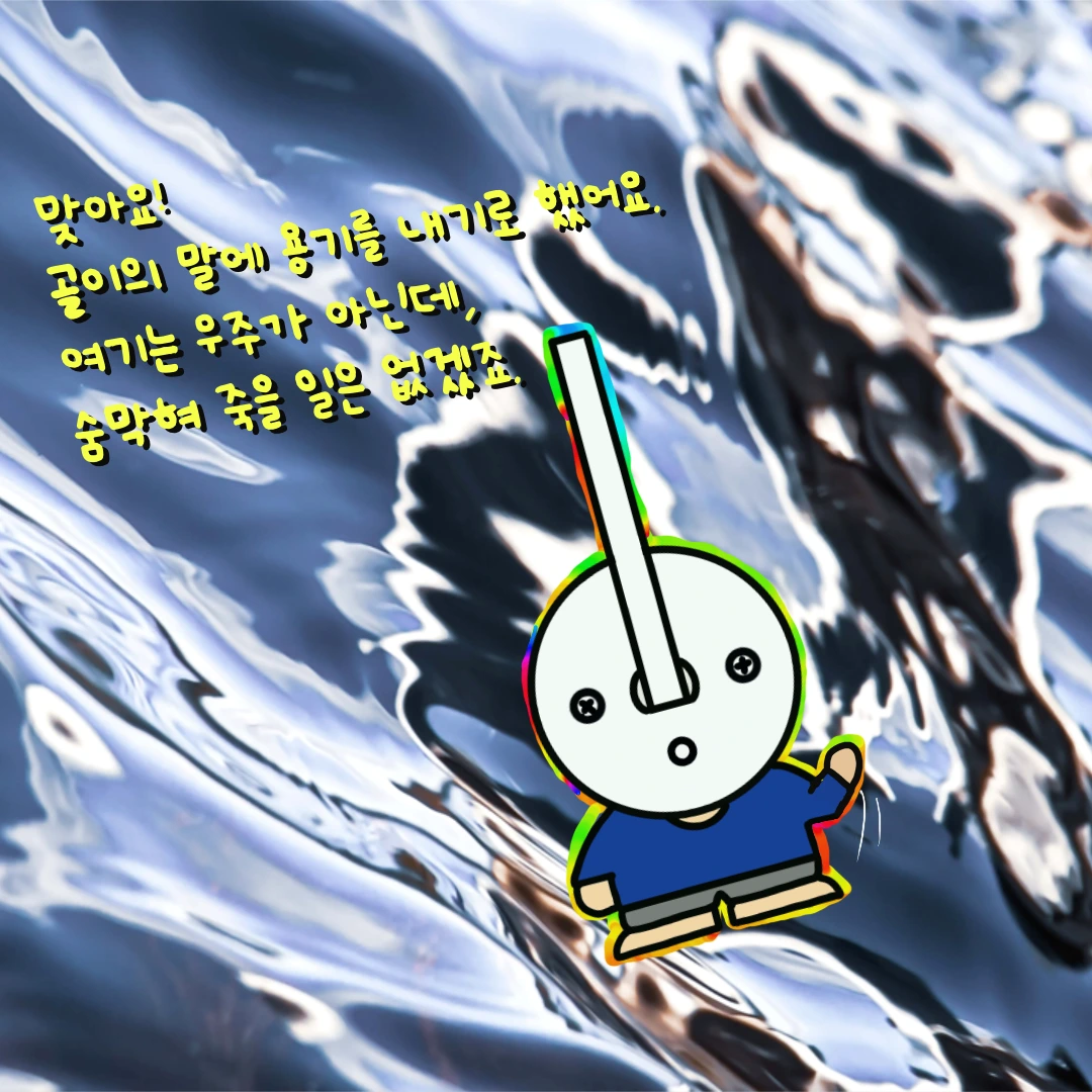 '여기는 우주가 아닌데, 바깥으로 나간다고 숨막혀 죽을 일은 없겠죠.'