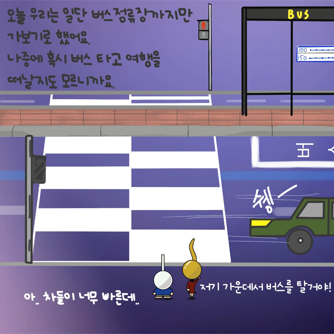 자비와 골이는 일단 버스정류장까지만 가보기로 했어요.