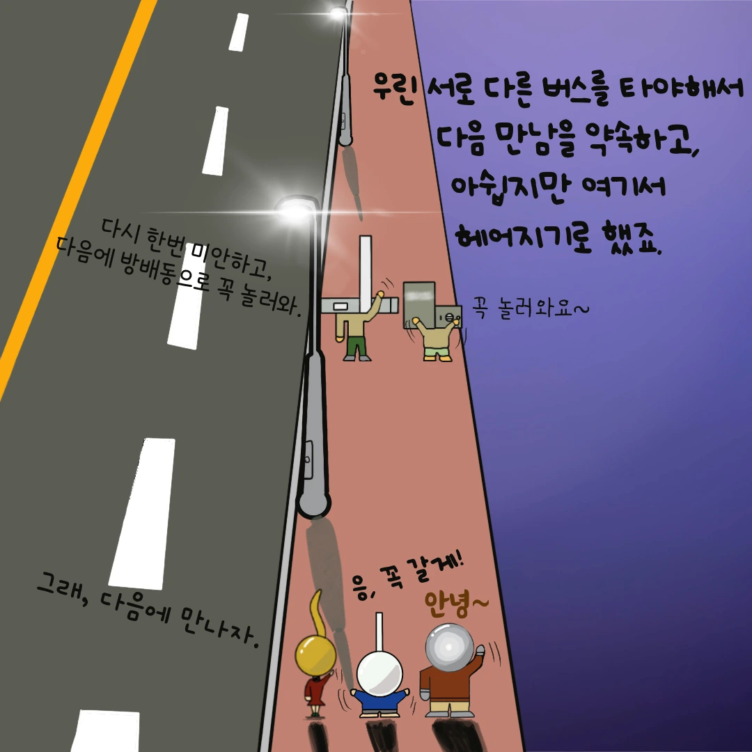 아쉽지만 서로 다른 버스를 타야해서 어쩔 수 없었죠.