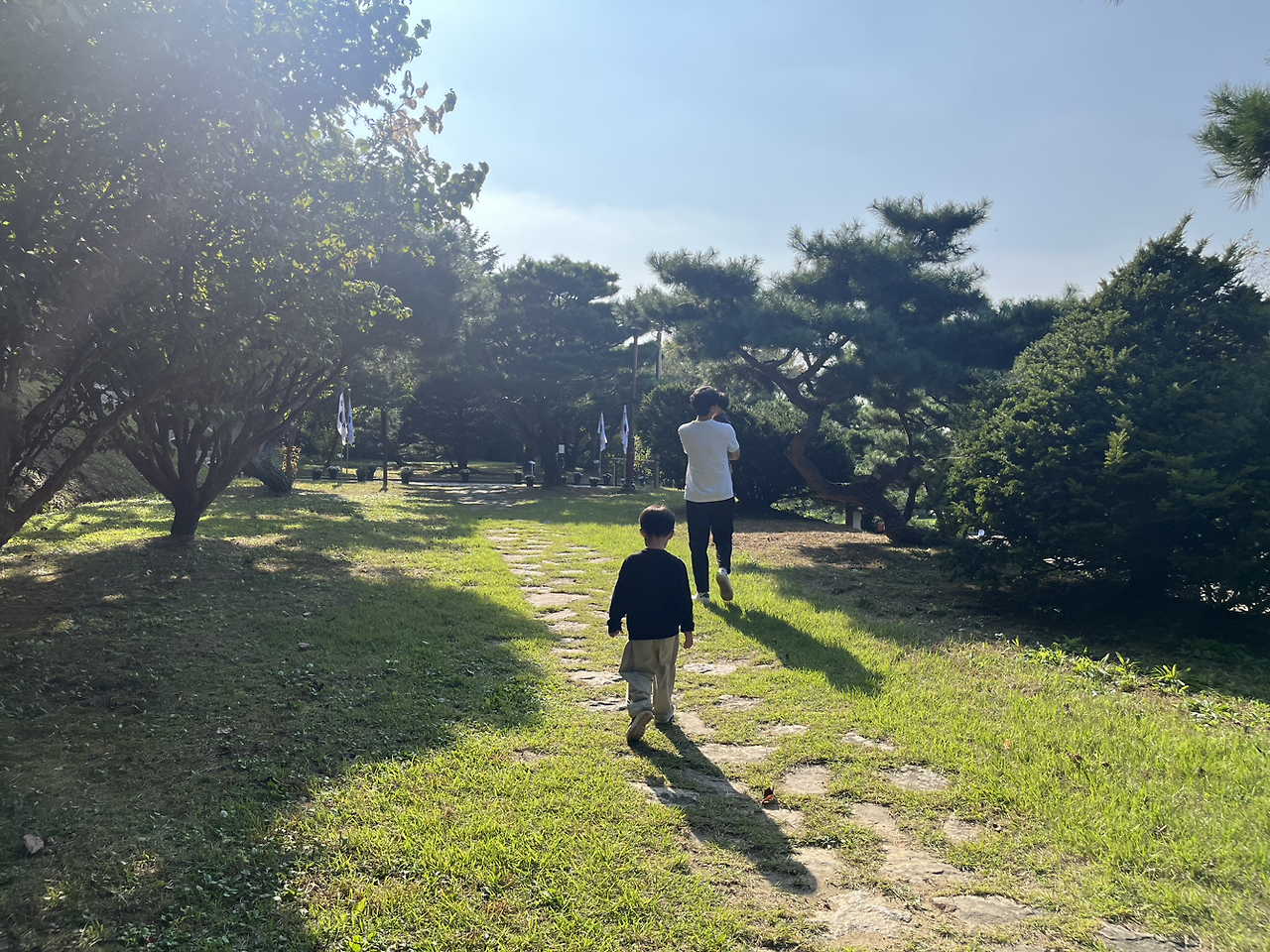 그런데 차에 탄 아이의 눈꺼풀이 무거워 보이는 건 가을 햇살이 강렬해서일까. 뜨뜻한 국물로 속을 데우고 생가와 기념관을 야무지게 누빈 아이는 차에 타자마자 카시트 안에 폭삭 안기더니 이내 느릿느릿 눈을 깜빡인다.