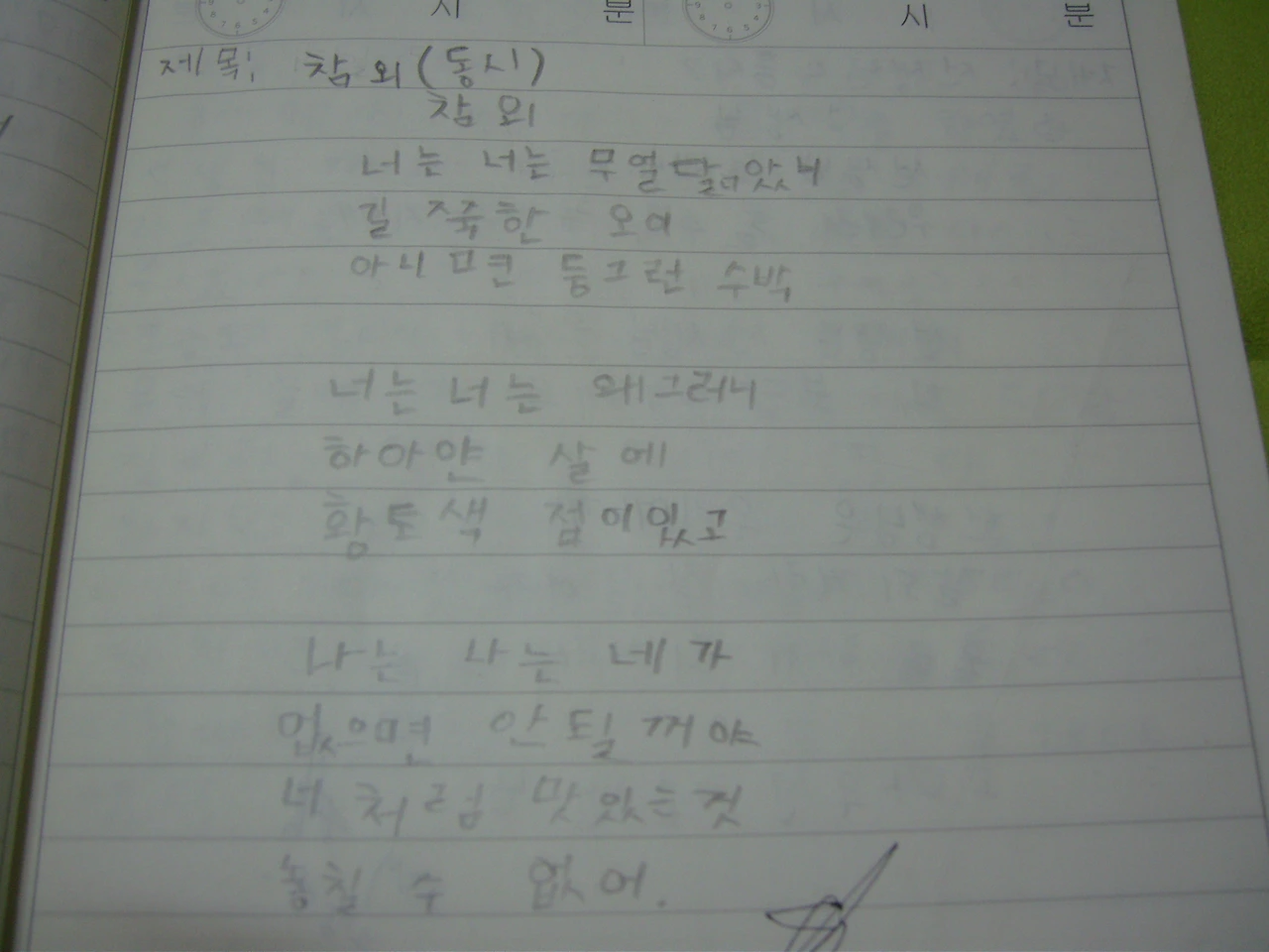 책장을 정리했습니다. 먼지로 코팅된 낡은 공책을 발견했습니다. 제 초딩 시절의 일기장이었습니다. 맞춤법도 띄어쓰기도 자주 틀리고 글씨도 그날그날의 기분 따라 달랐지만, 이런 건 크게 신경 쓰이지도 않았습니다. 그저 읽는 내내 웃음이 났습니다.