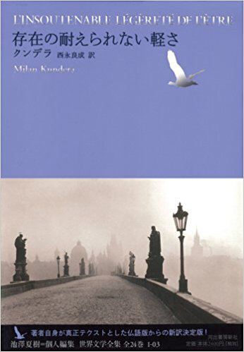 일본어판 제목이 특이합니다. '존재의 참을 수 없는 가벼움' 혹은 '존재의 견딜 수 없는 가벼움' 정도로 번역이 될 것 같네요. 일본어와 한국어는 어순이 같다고 들었습니다. 한국어판과 어순은 같되 표기방법만 다르게 제목을 번역하는 것도 충분히 가능했겠지요. 그럼에도 '존재'를 앞세운 건 어떤 이유였을까요. 원제를 거칠게 직역했기 때문이었을까요, 아니면 오해의 여지 없이 '존재'에 방점을 찍고 싶었기 때문이었을까요.