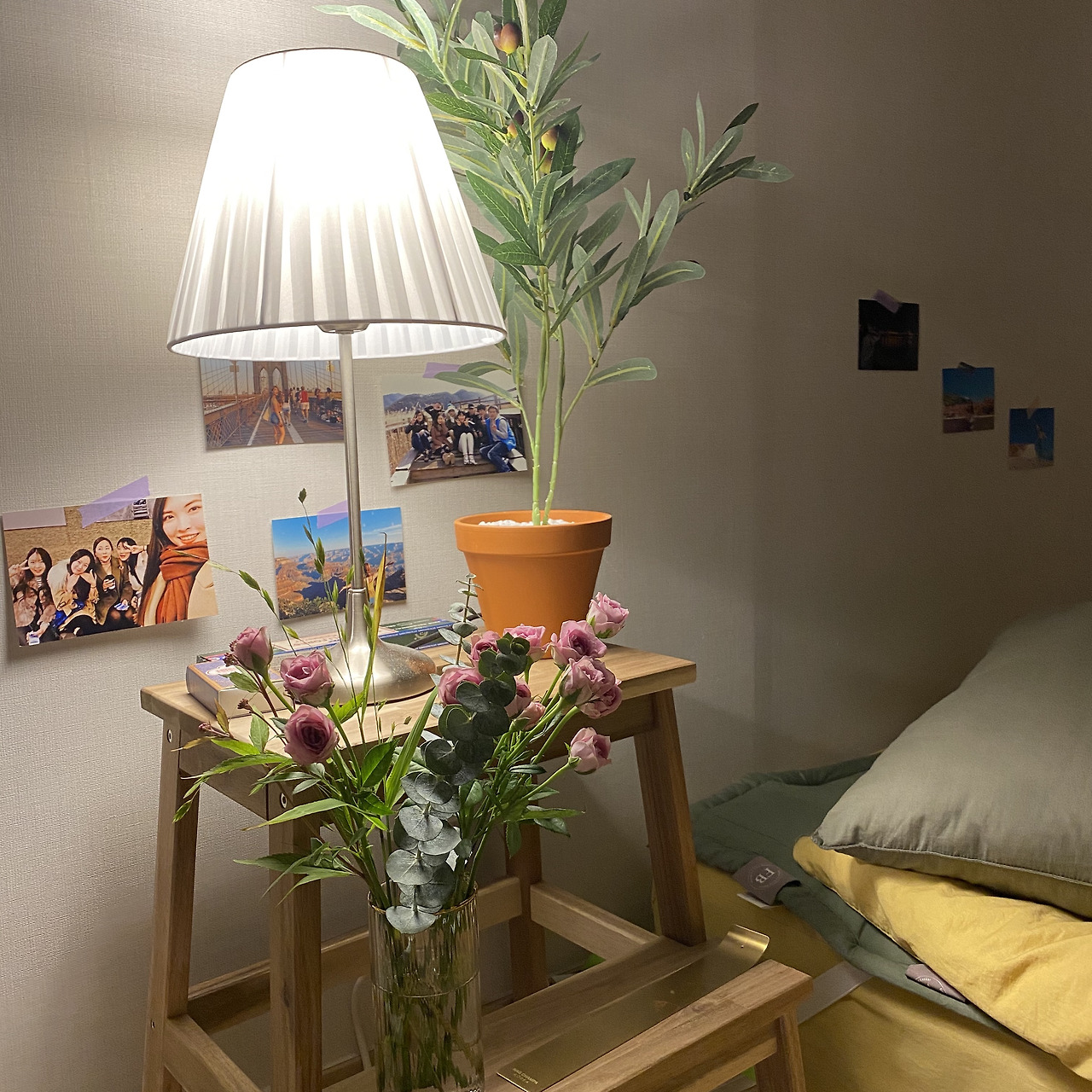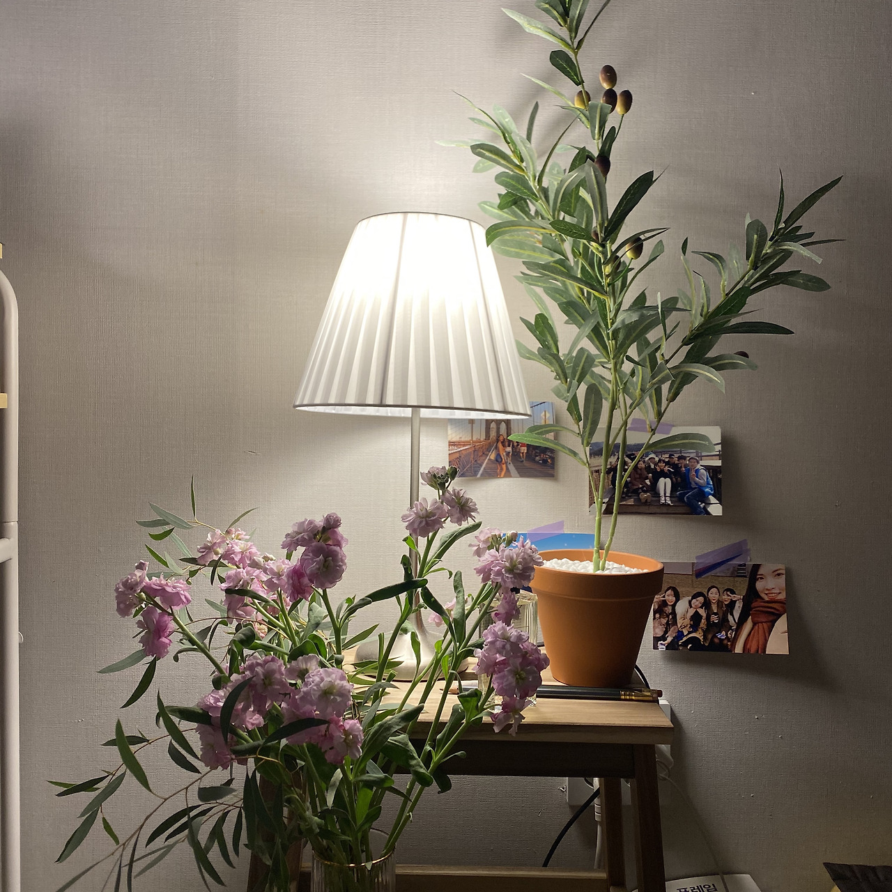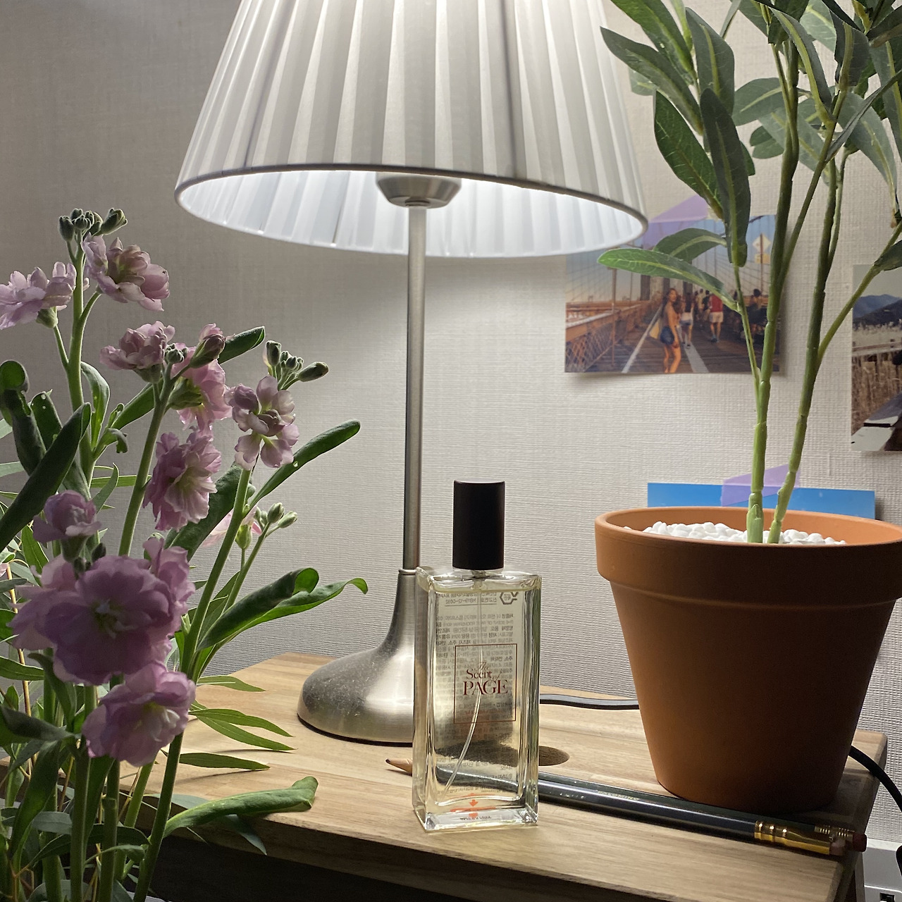 가구들을 이리저리 옮기면서 배치까지 마치고 나니 황량했던 공간에 생기가 감돌았다. 여행 가서 찍었던 사진과 사둔 엽서들도 붙여두고, 건너편 꽃집에서 보랏빛 스토크 한 다발을 사 와서 협탁 위 꽃병에 꽂아두니 더욱 화사해졌다. 그냥 잠자는 공간이라고만 생각했던 집에 애정이 가기 시작했다. 예전과 다름없이 넷플릭스를 보고 책을 읽고 밥을 먹고 잠을 자는데 눈에 걸리는 풍경이 깔끔하니 뭘 해도 마음에 걸리는 게 없었다. 내 주변을 어떻게 정리하고 꾸미느냐에 따라 내 기운과 기분이 달라질 수 있다는 걸 알았다.