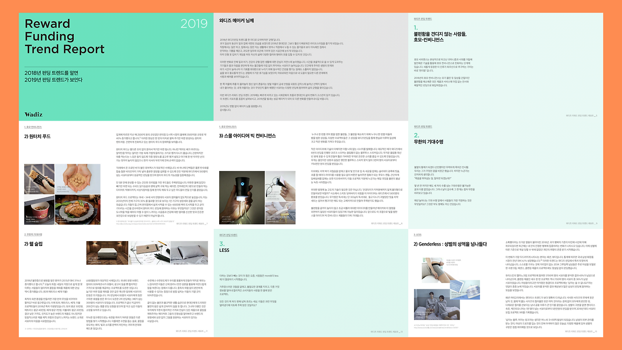 연말이 찾아왔다. 연초는 누구든 무언가를 시작하고 싶은 타이밍이었기에 이때를 잘 노리는 게 필요했다. 단순 프로모션 그 이상의 무언가. 펀딩 트렌드 리포트를 만들어보고 싶었다. 매년 연말연초가 되면 각종 기관에서 트렌드 리포트를 발표하곤 하는데 펀딩은 누군가가 처음을 만들어내는 곳이었기에 트렌드를 가장 먼저 발견할 수 있는 곳이라고 생각했다.