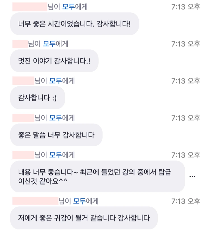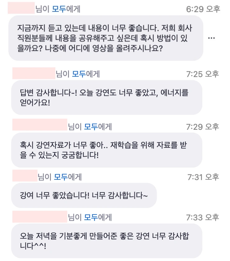 결론부터 이야기하자면 강연을 들어주신 분들의 반응이 뜨거웠다. 타겟이 워낙 양질의 수업을 많이 들으셨을 분들이셔서 긴장을 하지 않을 수가 없었다. 다행히 내 개인적인 경험을 도움이 될 만한 내용으로 최대한 쉽게 전달하려 했던 의도가 잘 담겼는지 QnA 시간에 강연 내용을 바탕으로 한 질문들이 쏟아졌고, 인스타그램 DM으로 따로 인사를 보내주신 분들도 계셨다.