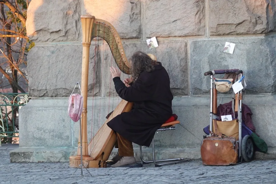 거리의 악사가 버스킹을 하고 있었고, 언뜻 이국적인 중국풍의 정자도 자리하고 있었다.