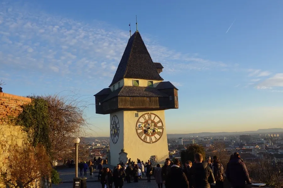 엘리베이터에서 내리자마자 시계탑이 눈앞에 나타났고, 언덕 위에서는 그라츠 시내가 한눈에 내려다보였다.