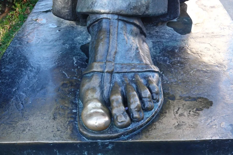 그의 엄지발가락을 만지면 소원이 이루어진다는 전설이 있어, 수많은 손길에 반질반질해진 동상의 발가락이 눈길을 끈다.