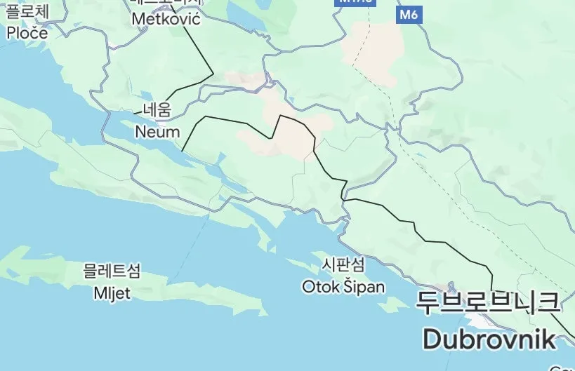 중간에 보스니아-헤르체고비나의 작은 해안 마을인 네움(Neum)이 끼어 있기 때문이다.