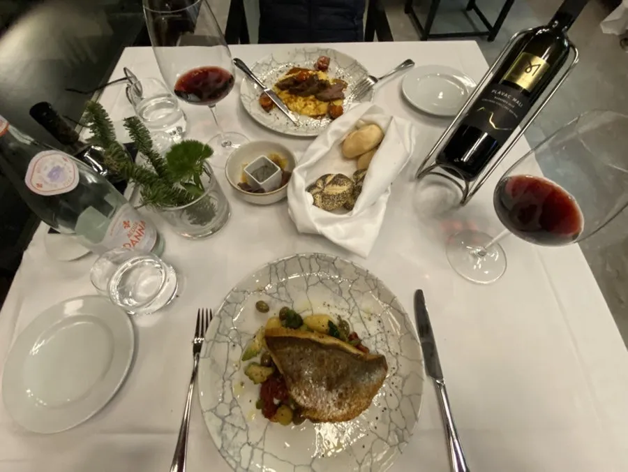 그날 밤, 동유럽 여행 중 가장 비싼 저녁 식사를 와인과 함께 즐겼다.