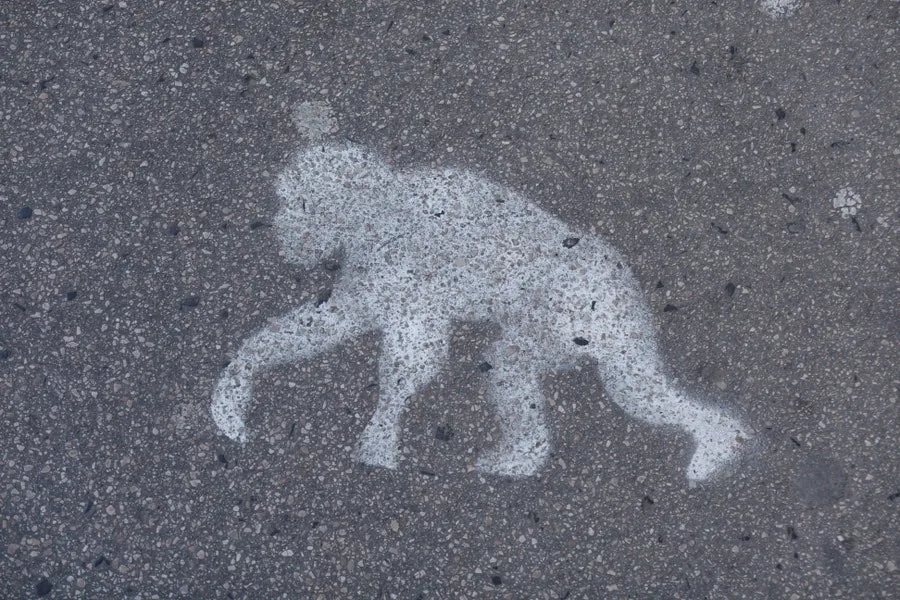 그러다 우연히 보도블록 위에 인류 최초의 조상으로 알려진 오스트랄로피테쿠스, 일명 “루시(Lucy)”의 형상이 100m 가까이 그려져 있어 잠시 발걸음을 멈추게 했다.