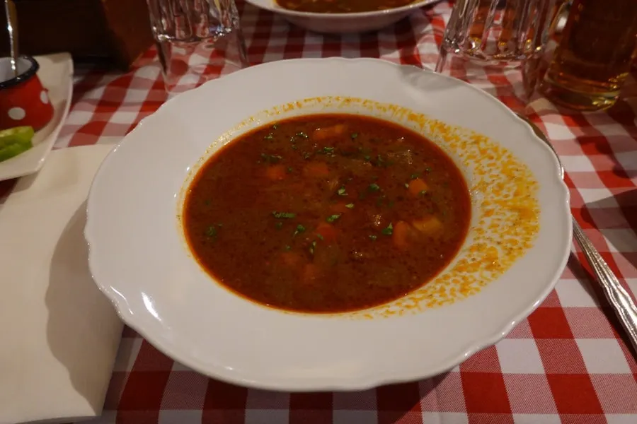 헝가리 전통 요리인 굴라쉬가 포함된 세트 메뉴를 주문하였다.