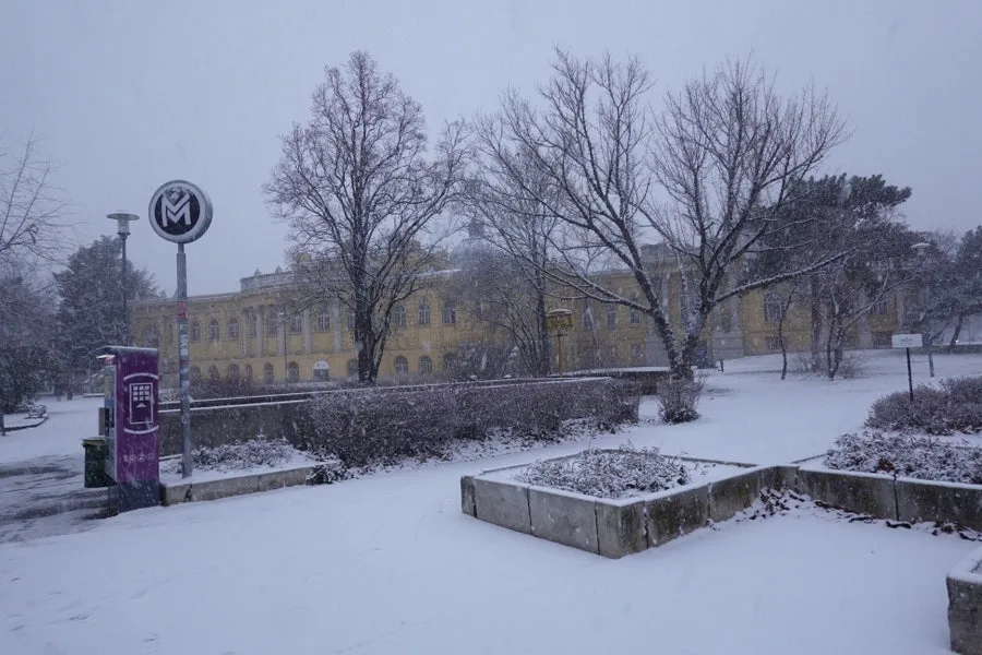 세체니 역에서 내려 지상으로 올라오자 함박눈이 계속 내리고 있었다.