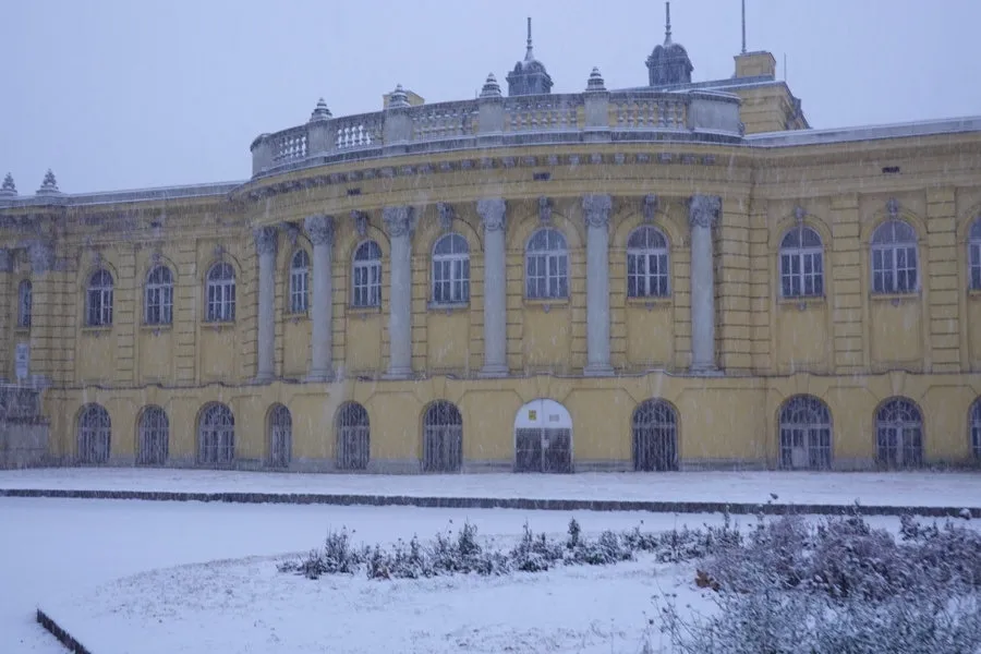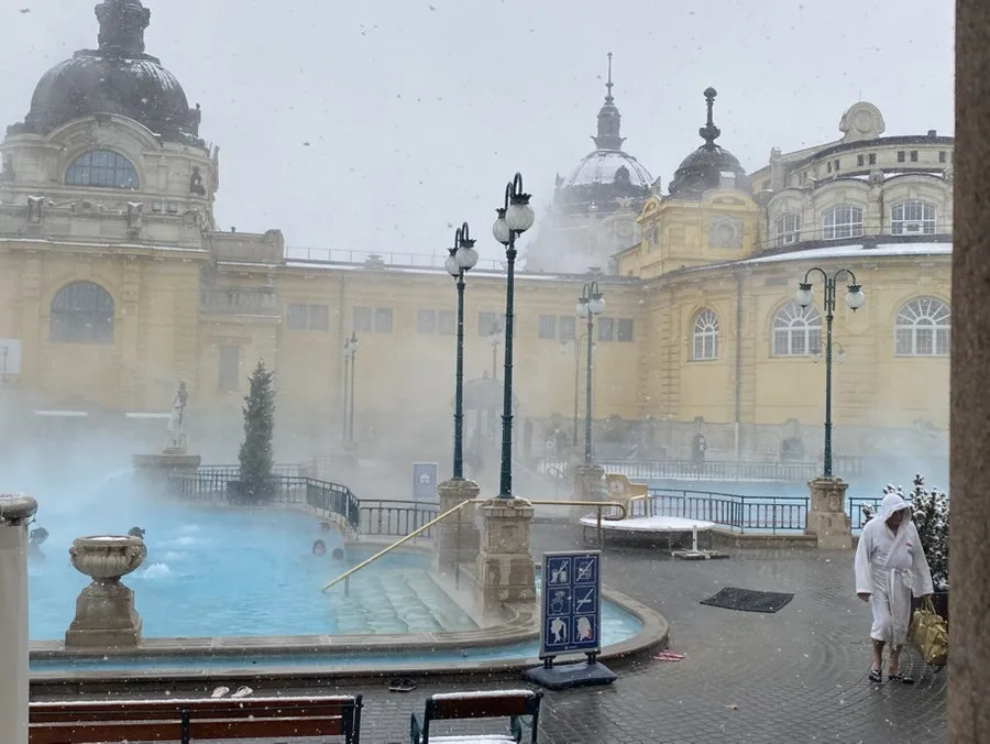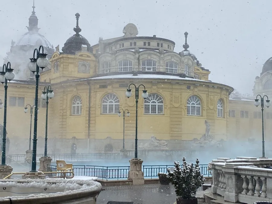 아침 일찍 세체니 온천을 가기로 하였는데 밖에는 함박눈이 펑펑 내리고 있었다.
