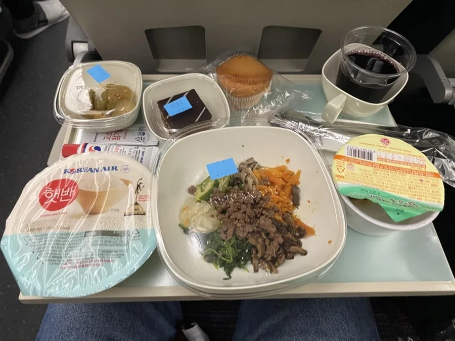 대한항공에서 제공하는 기내식은 한 달 만에 처음 맛보는 한식이다.