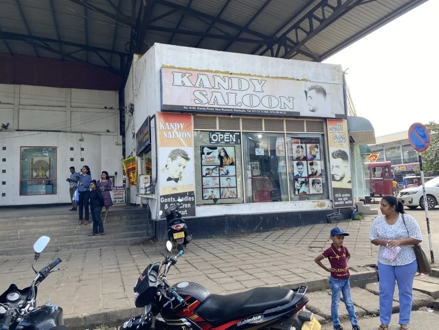 담불라 버스 터미널에 도착해 캔디행 버스가 어디서 출발하는지 물어보니, 의외로 터미널 안이 아니라 도로 건너편 캔디 미용실 앞에서 탄다고 한다.