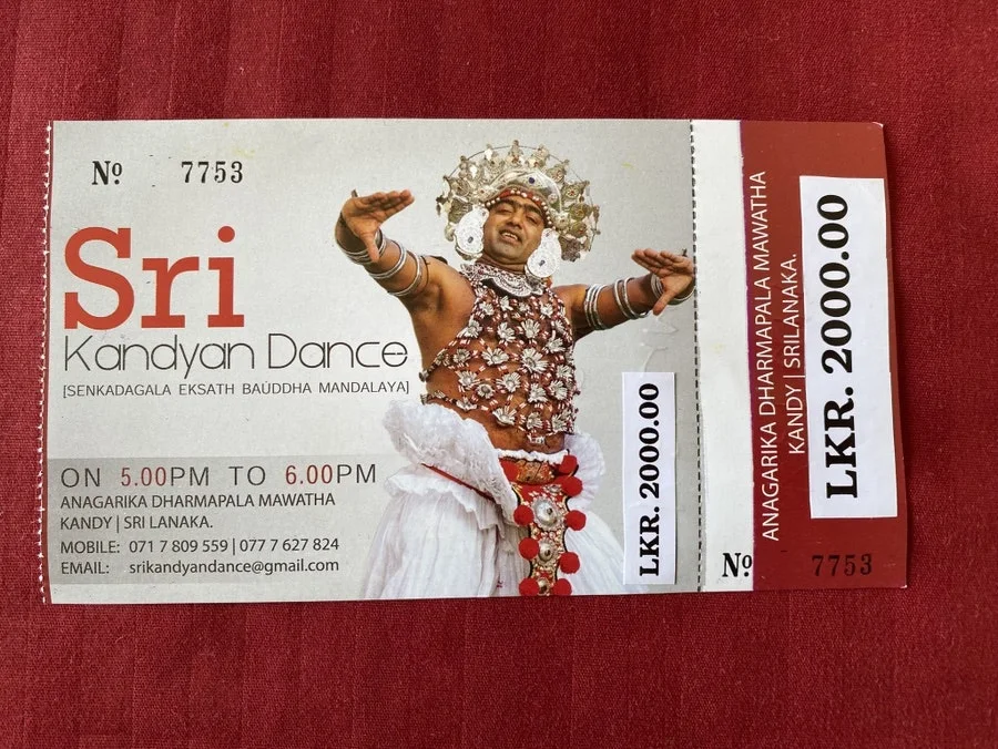 더운 날씨 탓에 숙소에서 잠시 쉬고 있는데 주인이 캔디의 전통 무용 공연인 캔디안 댄스(Kandyan Dance) 관람을 추천해 주며 티켓까지 예약해 주었다.