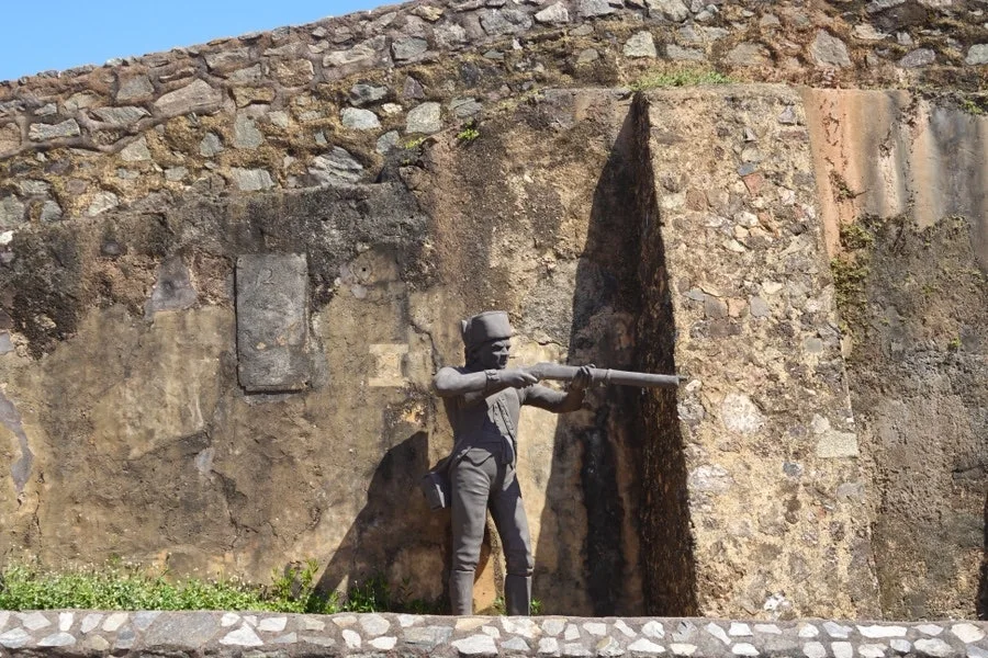 성벽 위에는 포트를 지키던 군인의 조형물과 오래된 대포들이 전시되어 있었다.