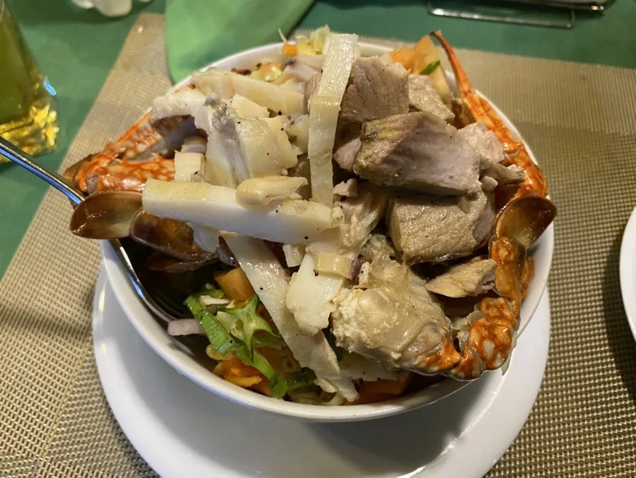 저녁 식사를 위해 해산물이 들어간 음식을 주문했지만 솔직히 맛은 아쉬웠다.