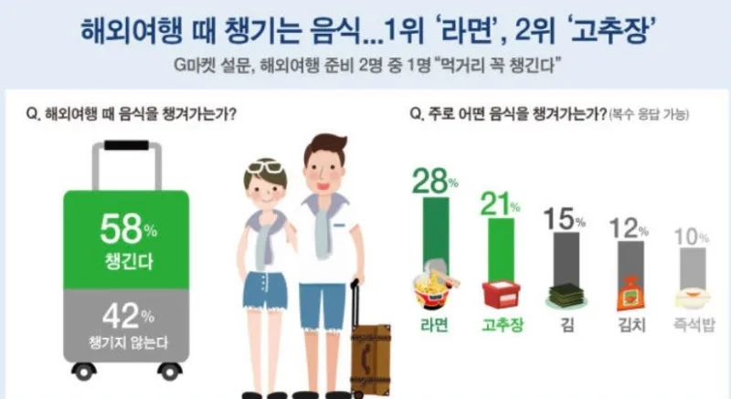 해외 여행객 중 일부 패키지 관광객들의 풍속도는 현지에 도착하자마자 한국식당으로 직행하여 한국음식을 시켜놓고 들고 온 소주를 마시는 모습들이다.