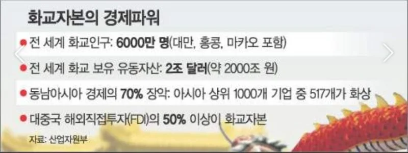 동남아에서 화교들의 경제력은 상상을 초월한 정도로 막강하고, 이런 경제력을 바탕으로 동남아 국가들을 뒤에서 움직이는 화교들의 영향력은 실로 상상 이상이다.