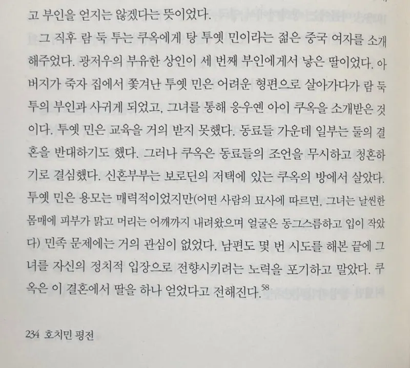 지금까지의 내용이 『호찌민 평전』에 나오는 호찌민의 결혼 이야기다.