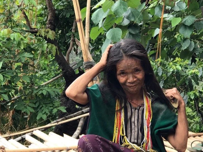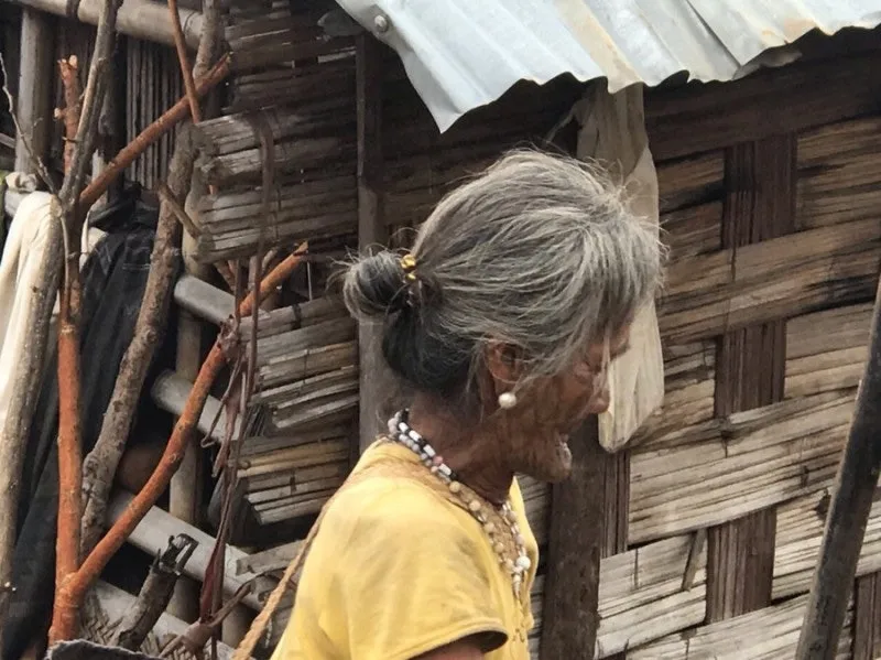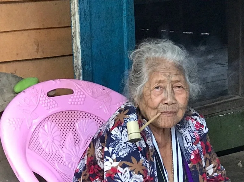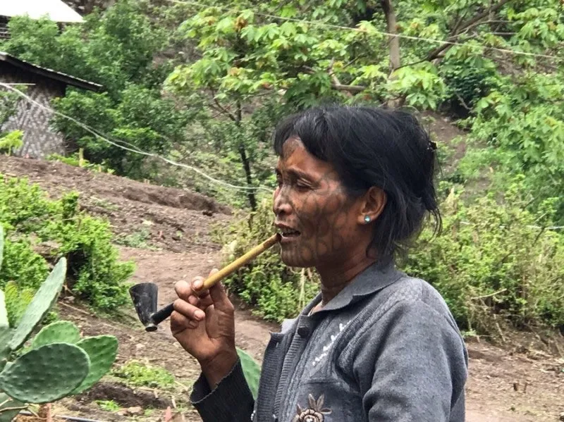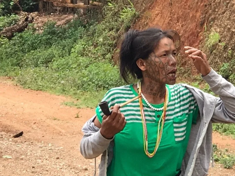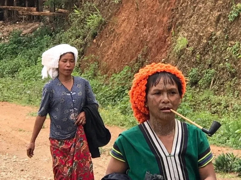 마을길을 따라 천천히 안으로 들어가자 얼굴문신을 한 여성분들이 담뱃대를 물고 지나간다.